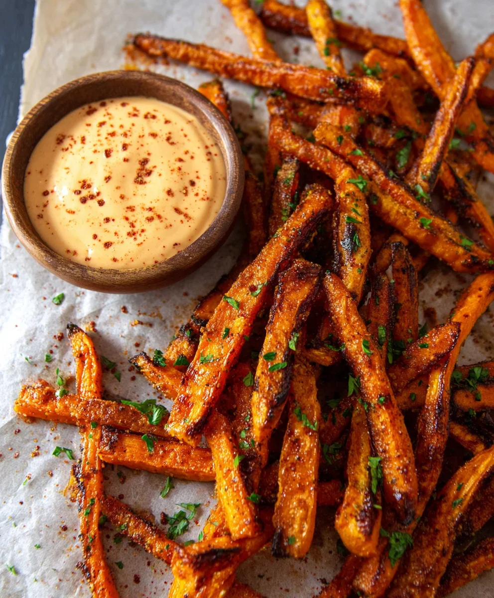 Baked Carrot Fries-Healthy Paprika Garlic Aioli