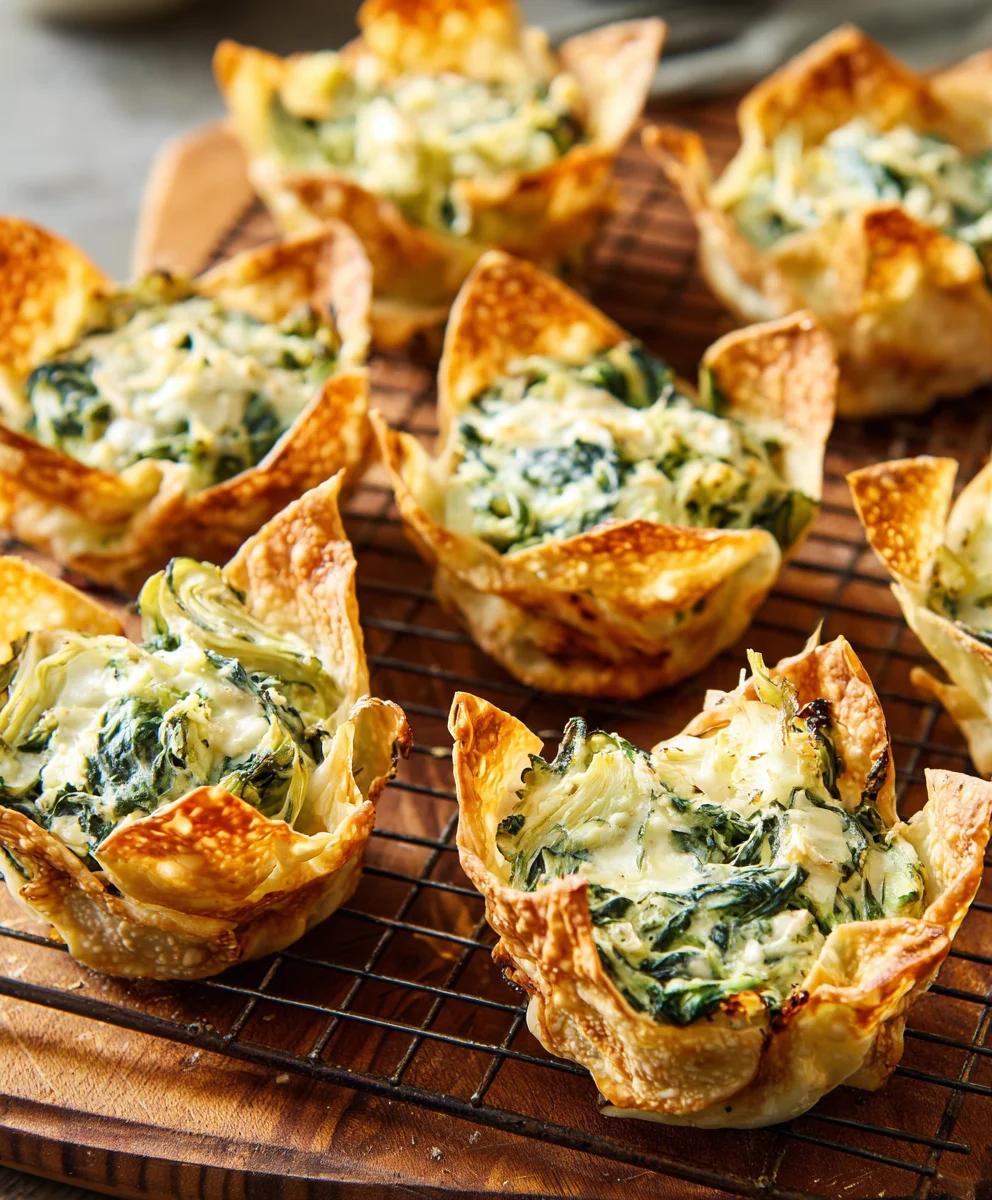 Spinach Artichoke Wonton Cups- Easy Appetizer