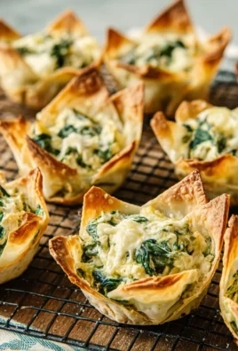 Preheat your oven to 375°F (190°C). Arrange the assembled phyllo parcels on a baking sheet lined with parchment paper, leaving a little space between each one. Lightly brush the tops of the phyllo parcels with any remaining melted butter or a little olive oil. This will help them achieve a beautiful golden-brown and crispy finish. Bake for 12-15 minutes, or until the phyllo dough is golden brown and delightfully crisp. Keep a close eye on them, as phyllo can go from perfectly golden to burnt very quickly. Once they’re out of the oven, let them cool for a few minutes on the baking sheet. For an extra touch of elegance and flavor, you can sprinkle them with chopped toasted walnuts or pecans and garnish with a fresh parsley sprig. These are best served warm, but they are also delicious at room temperature, making them perfect for parties.